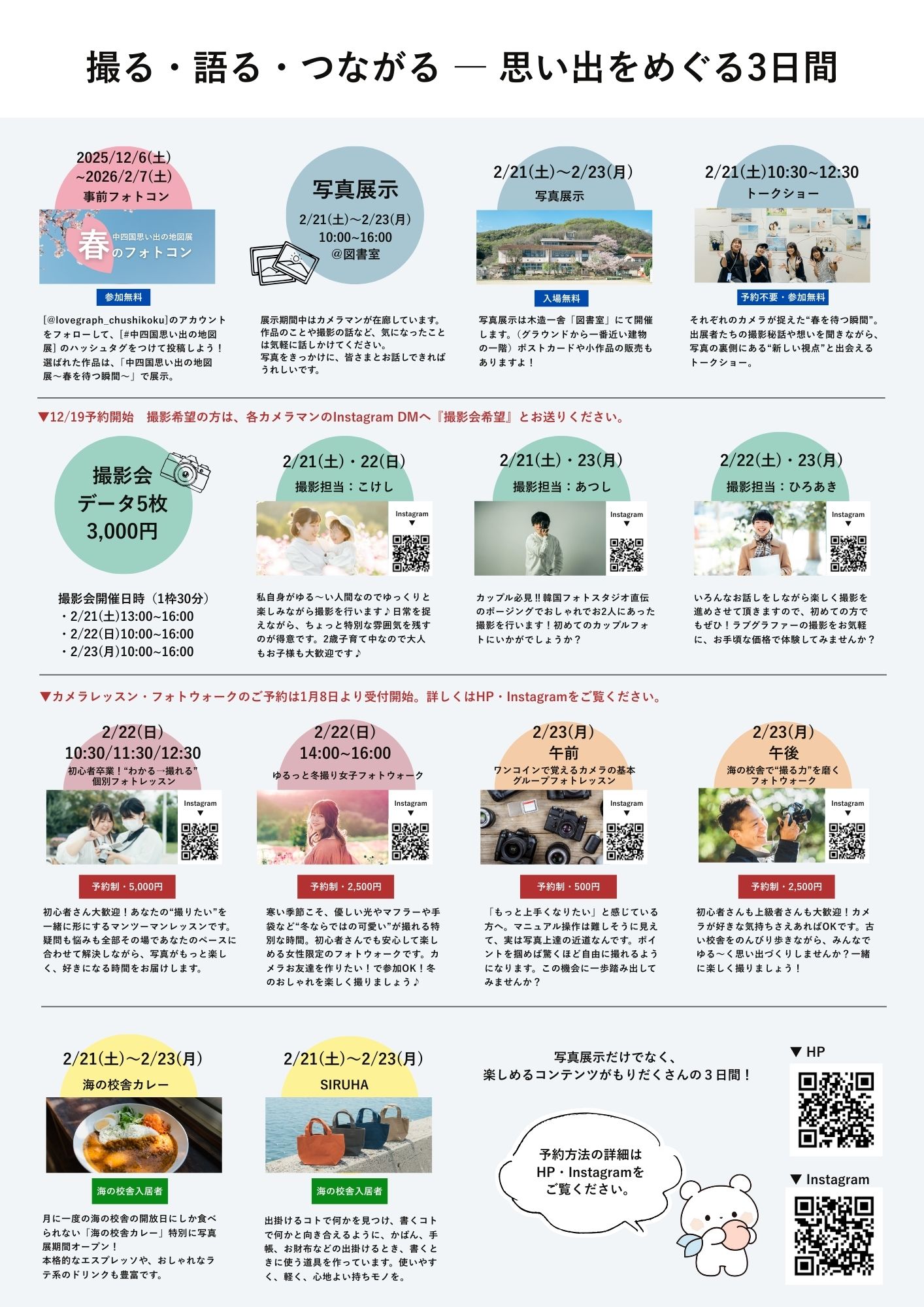 期間中は、プロのカメラマンによるトークショーや撮影会(※要予約)、