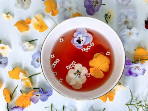 の食べられるお花を使ったハーブティーで、ちょっと優雅なお茶会を。