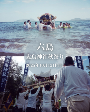 笠岡諸島・六島で行われる、大鳥神社秋祭りのお知らせです。
