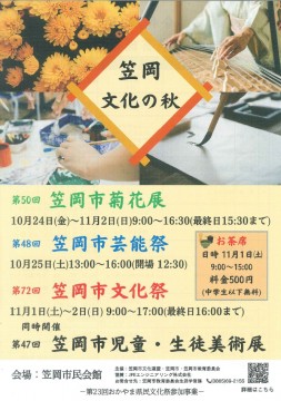 笠岡文化の秋【笠岡市菊花展/笠岡市芸能祭/笠岡市文化祭/笠岡市児童・生徒美術展】