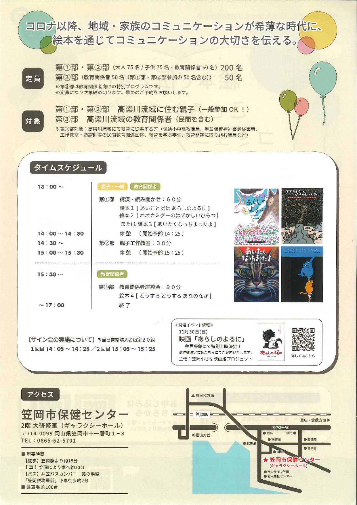 定 員:第1部、第2部(大人75名/子供75名・教育関係者50名)200名