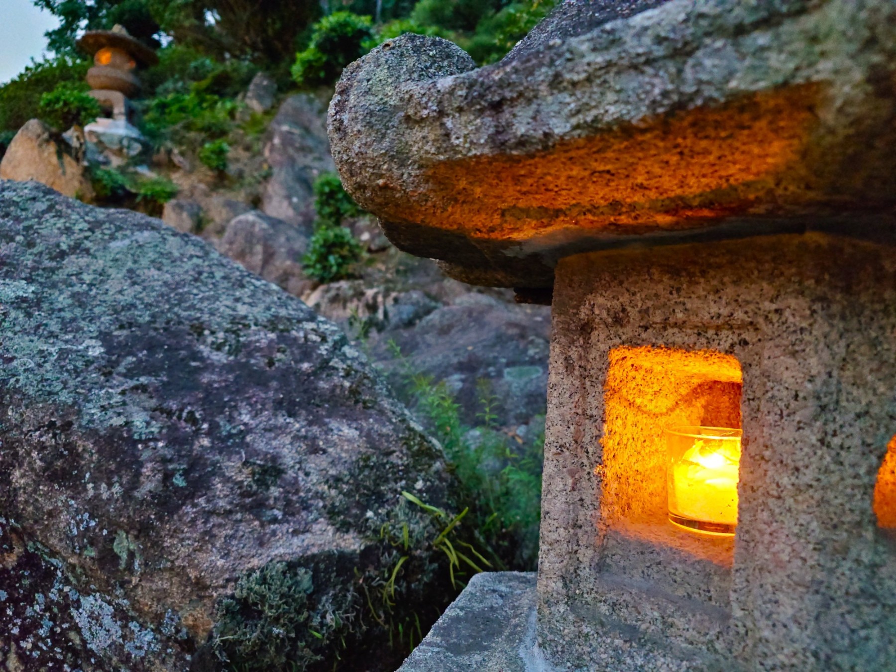 日没に合わせて庭園にキャンドルを参加者のかた自身で飾り、