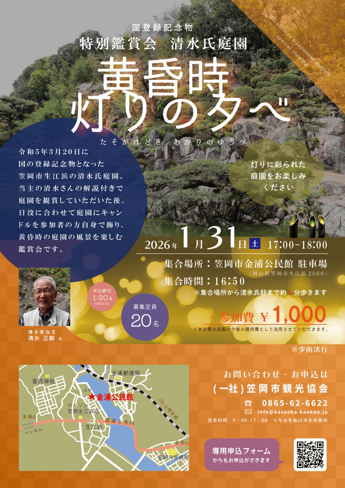 清水氏庭園特別鑑賞会 黄昏時 灯りの夕べ 参加募集のお知らせ