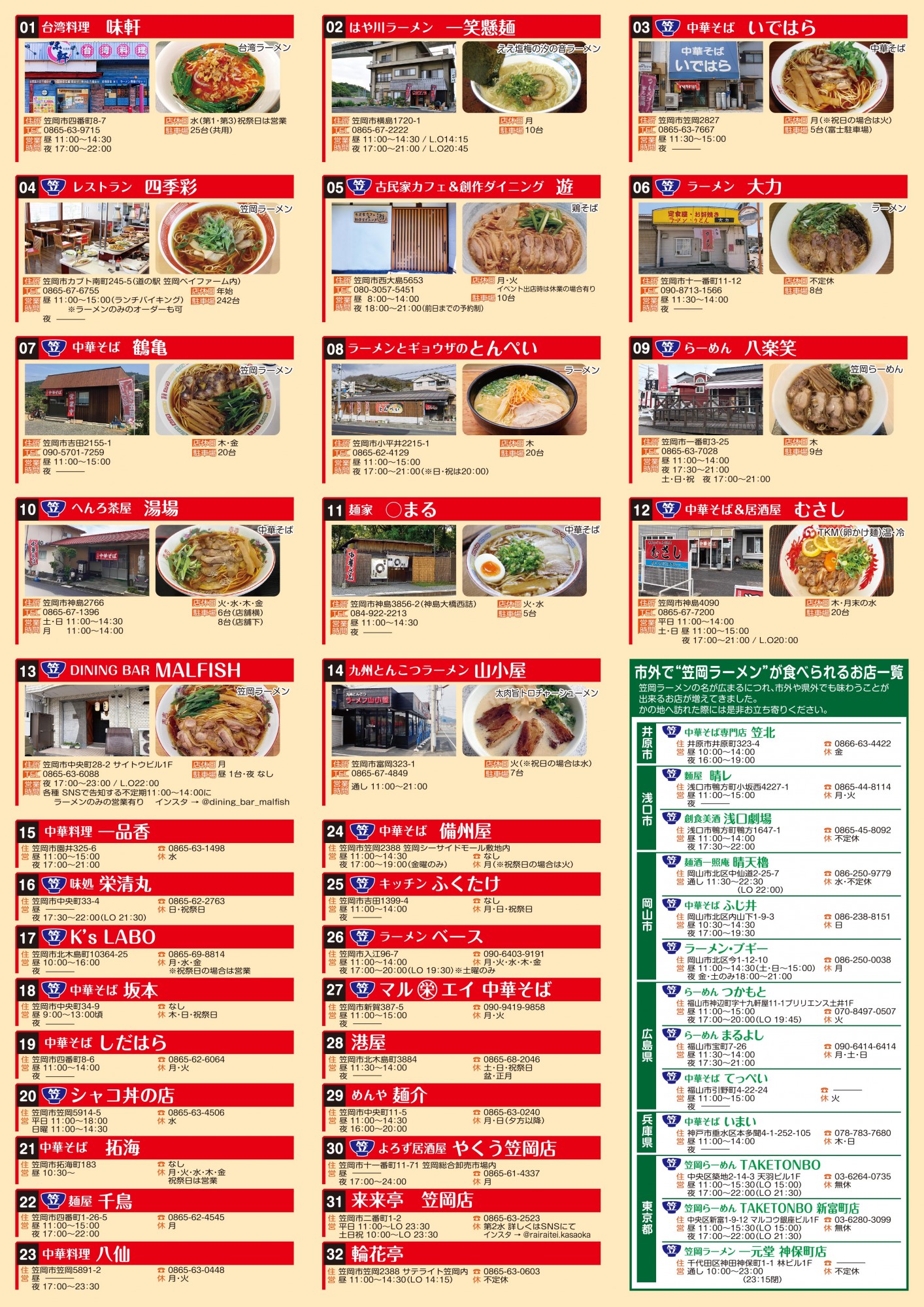 笠岡市内のラーメン店舗32店舗と市外で笠岡ラーメンが食べられるお店13店舗の