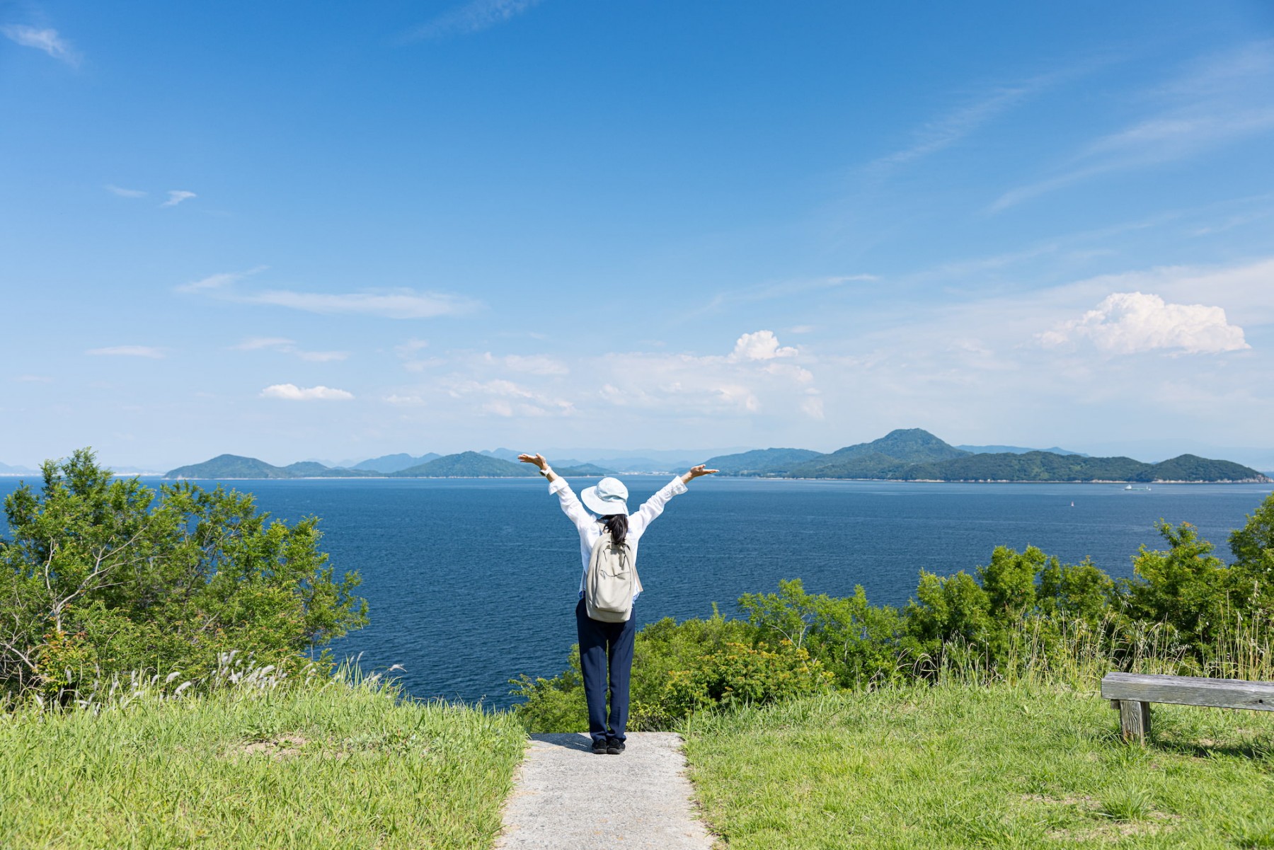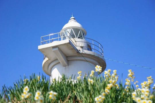 白亜の灯台がそびえる高台からは、瀬戸内海を広く見渡せます。
