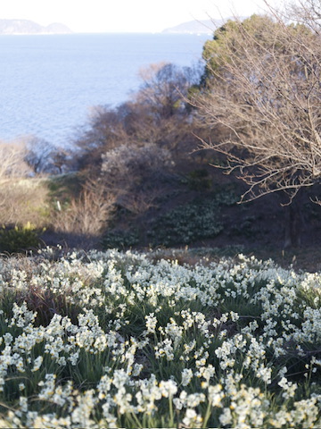 蕾も見られ、これから咲く花とともに、島全体で水仙の景色が感じられます。