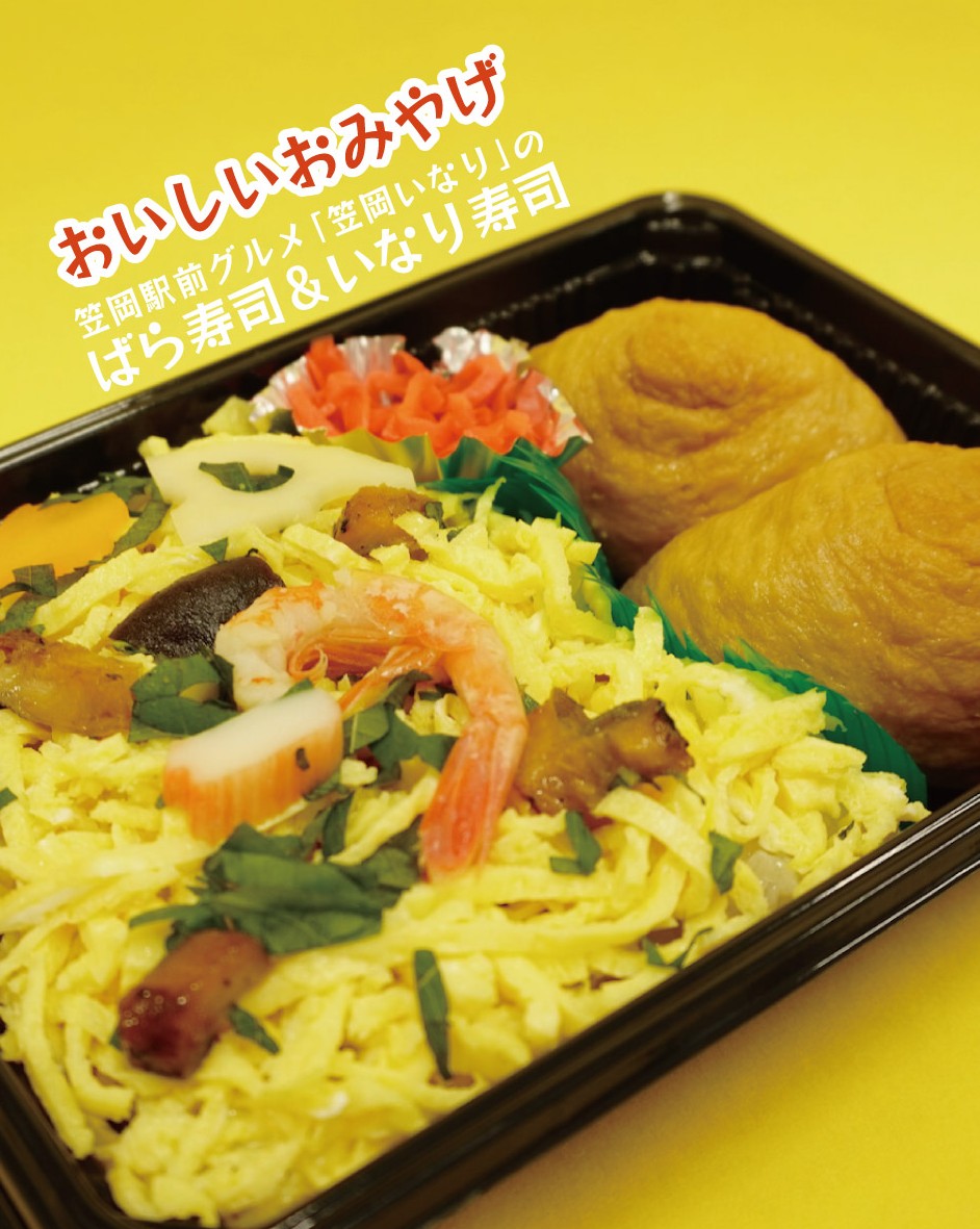笠岡駅前グルメ「笠岡いなり」の、ばら寿司といなり寿司のお土産付きです。山頂でのおやつもお楽しみに♪