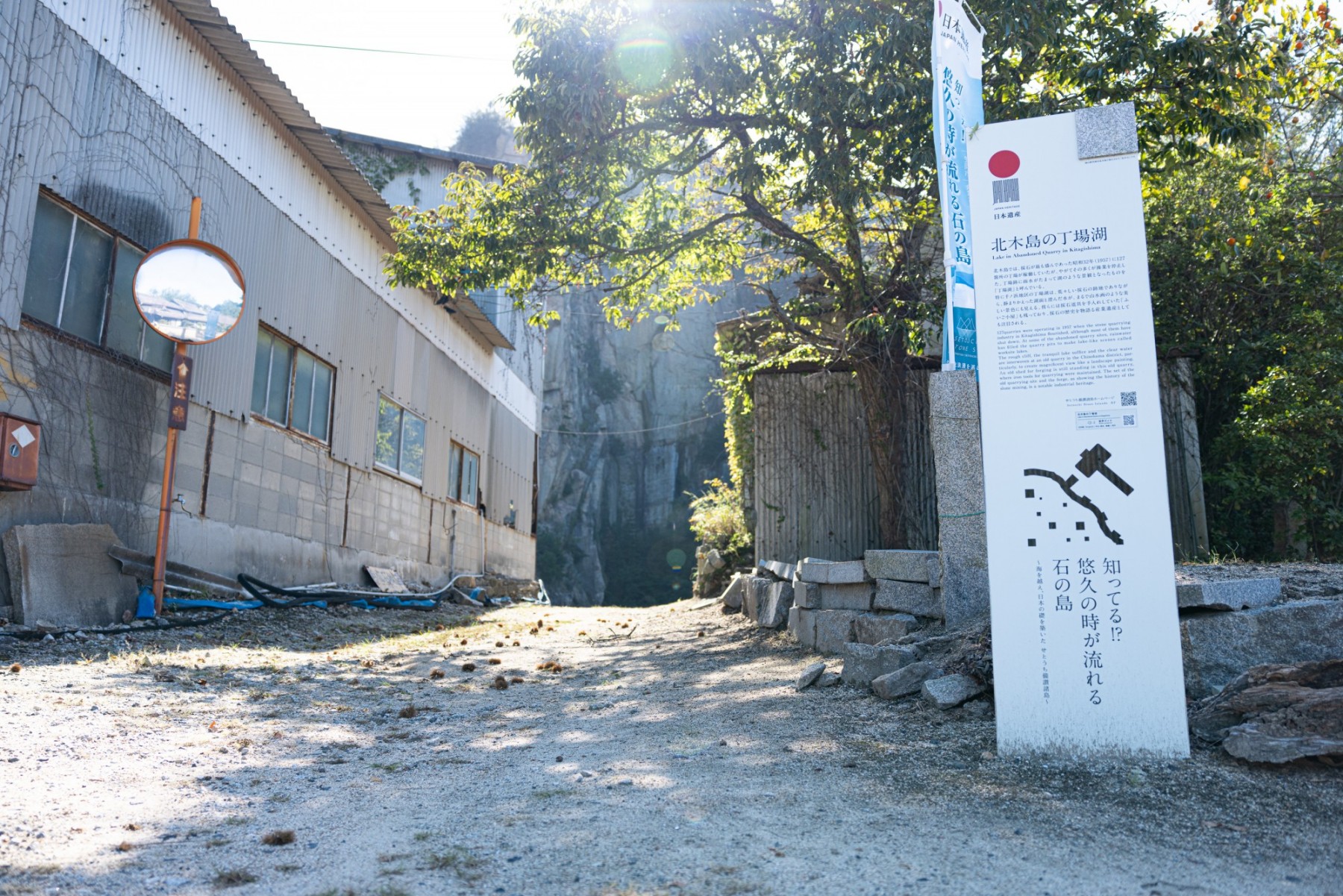 北木島にはかつて採石していた丁場が操業停止し、そこに雨水が溜まって湖のような景観となった「丁場湖」があり、特に千ノ浜地区の丁場湖は、まるで山水画のような美しい景色を見せます。