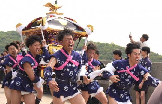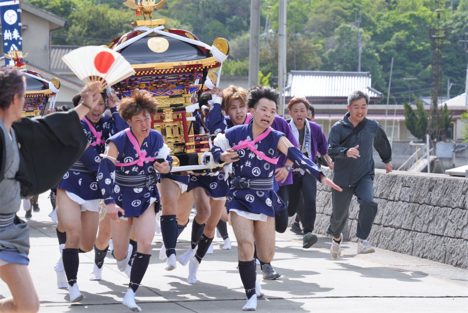 真鍋島の八幡神社で行われる「走り神輿」は、その名の通り神輿が島中を疾走する勇壮な祭り。