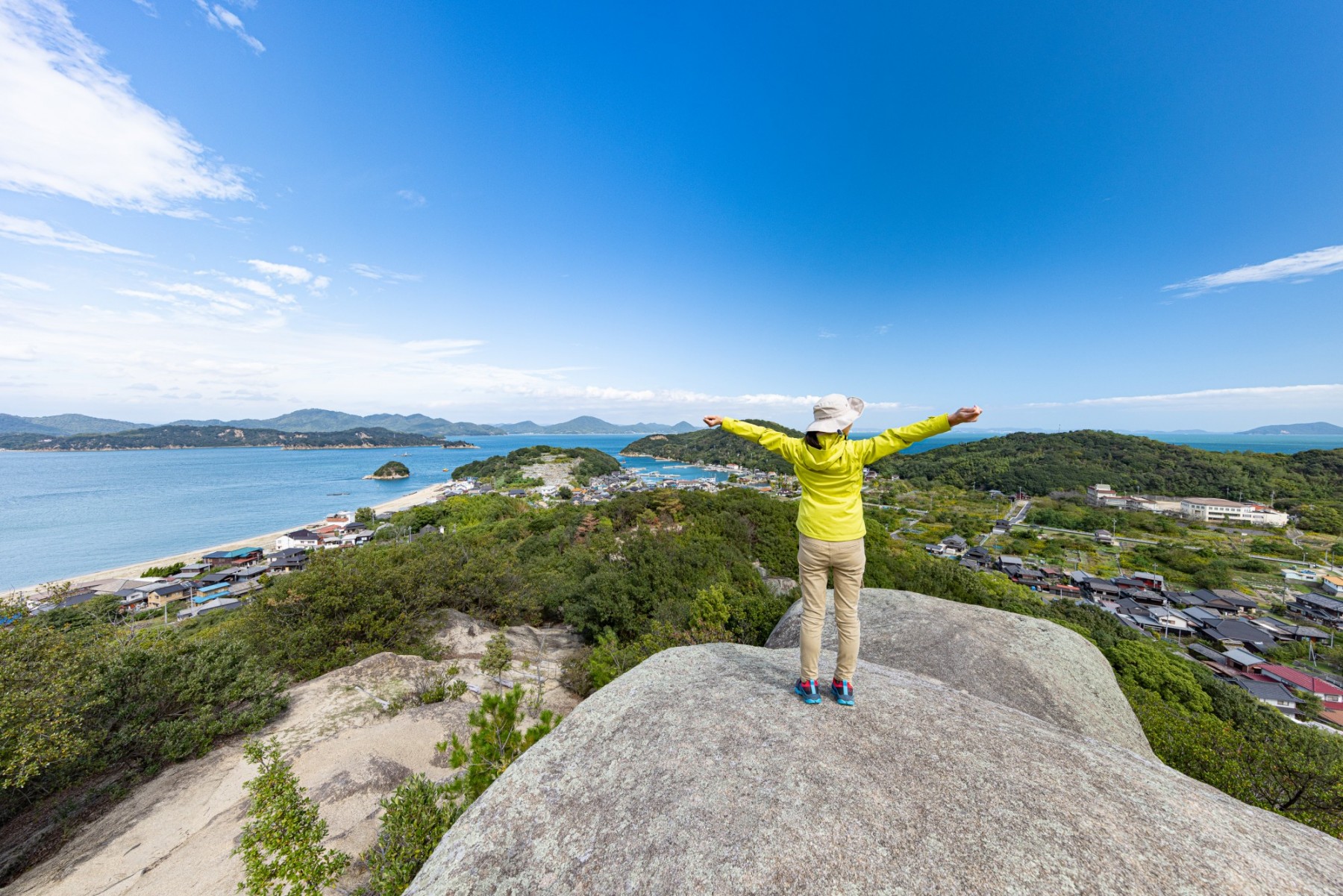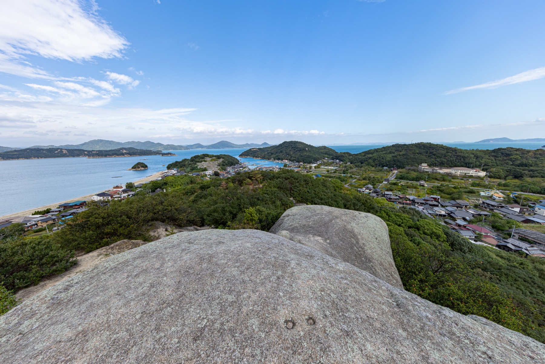 白石島八十八カ所・第66番札所にある「はと岩」です。 古くから「波止(はと)」として集落を見守ってきたと言い伝えられるこの巨石。 岩の上に腰を下ろすと、吹き抜ける心地よい潮風とともに、 白石島ならではの美しい景観を心ゆくまで堪能できます。 島内でも指折りのビューポイント、ちょっとした冒険気分で登ってみてはいかがでしょうか。