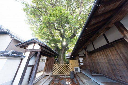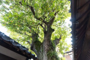 軒先には樹齢250年といわれる太い幹を持ったホルトノキがあります。県内では珍しい樹木で、一説には平賀源内が讃岐に苗木を持ち込んだものが、やがて真鍋家に伝えられたといわれています。