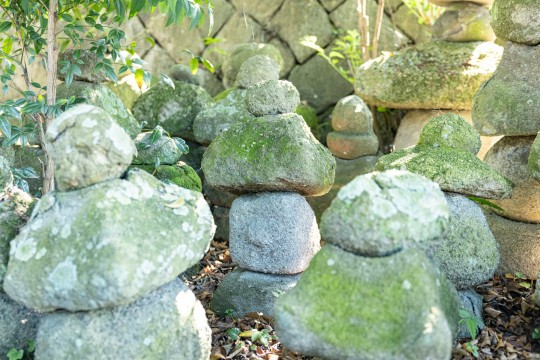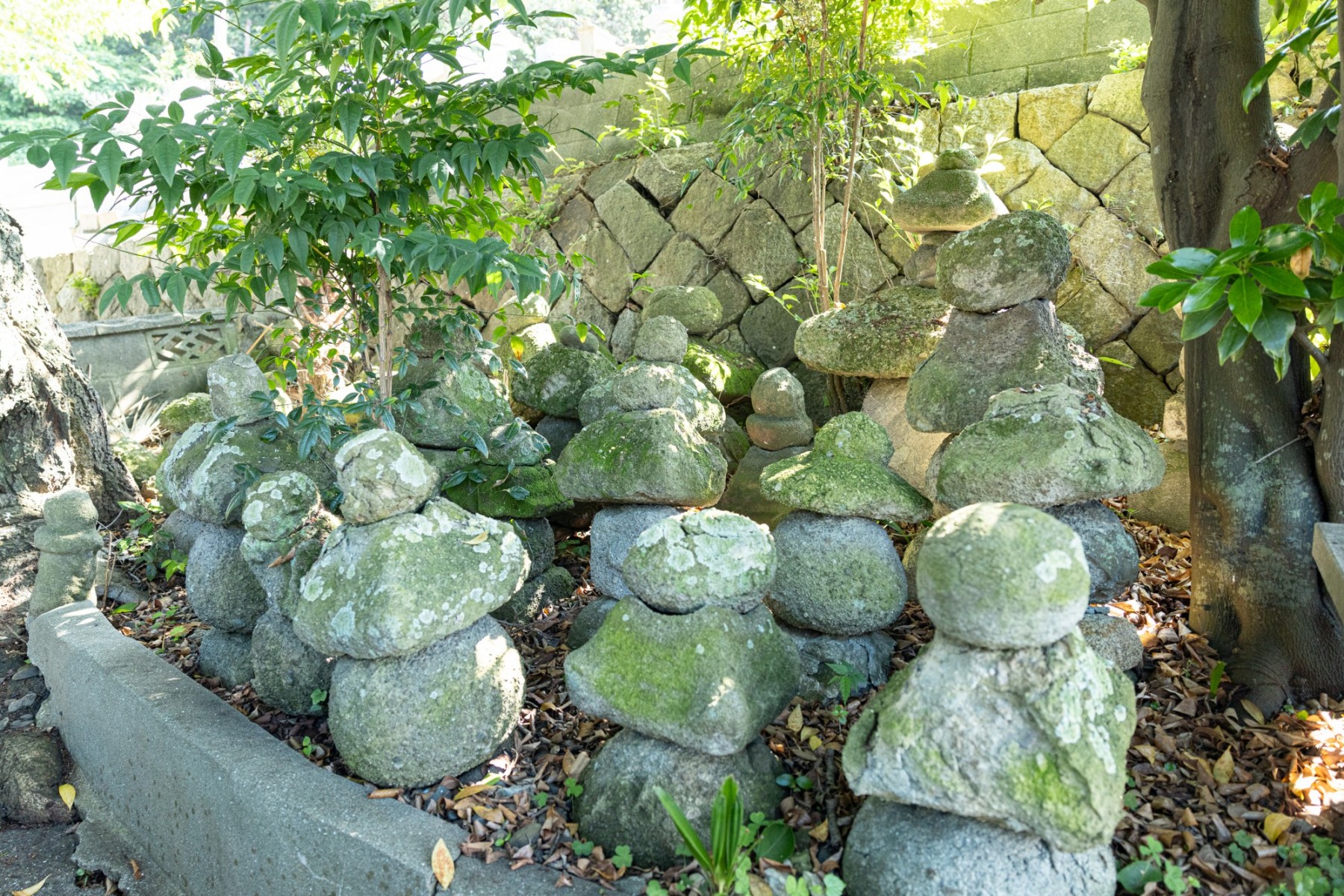 真鍋島字岩坪の墓地に凝灰岩製の五輪塔群(一部に宝篋印塔あり)があります。
