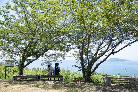 海景色や道べりに咲く季節の花を楽しみながら島を周回する道の途中にあります。